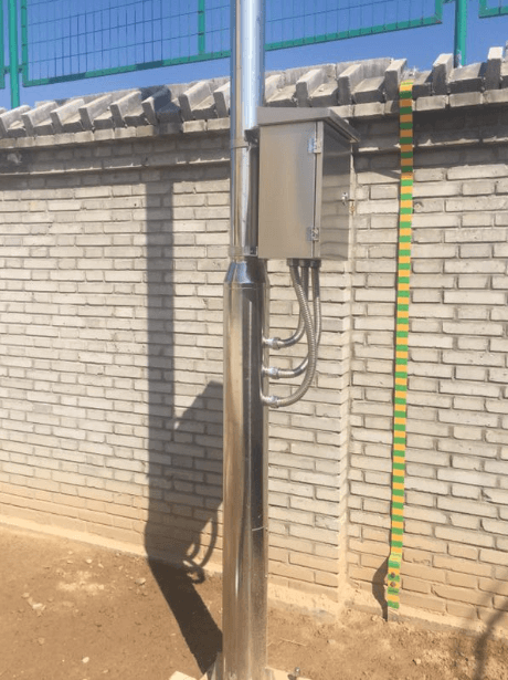 中國石油場站,壓氣站304不銹鋼監控桿施工現場,監控桿高度4.5米,材質為純304不銹鋼,壁厚4mm。
